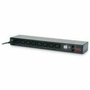 The APC by Schneider Electric Switched Rack Power Distribution Unit (PDU) distributes power to devices in the rack. It has a sensor that measures the current that it and its attached devices use. It can be monitored through Web, Telnet, SNMP, SSH, or StruxureWare Data Center Expert ® interfaces.