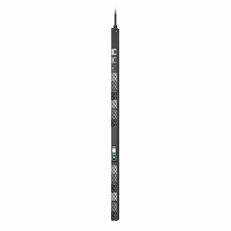 APC NetShelter Rack PDU Advanced provide reliable power distribution to IT Equipment within server and/or networking racks. Switched outlets to turn outlets on or off remotely. Outlet and PDU level power metering for power visibility and notification of potential overload. 4-in-1 combination outlets which can be used as either C13, C19, C15, or C21 outlets provide unparreled deployment flexibility. Maximum outlet density with 42 outlets in a 2.2" wide form factor. Outlets on the PDUs are color coded and/or labeled by breaker and input phase on 3 phase models to simplify deployment. Provides an alternating phase design whereby each of the 3 phases are organized into small outlet groups which alternate from top to bottom of the PDU to facilitate better power cord management and promote better load balancing. Power Sharing allows PDUs cascaded together via 2 ethernet ports enable an Network Management Card to continue functioning in the event of an AC power loss. No interruption in Network communication, sensors operation, and alarm traps. Live Swap Network Management Card (NMC) which can be replaced without powering down the PDU or connected devices to minimize downtime in the unlikely event of an NMC power event. Rated and approved to operate up to 60C (140F) at full load ensures reliability and availability even in today's high density deployments. Gigabit ethernet to enhance and standardize network connectivity across all assets in the data center. A second ethernet port (10/100) is available to allow cascading to other PDUs, connect to a 2nd private network, or provide network redundancy. 1% metering accuracy for the peace of mind to use NetShelter Rack PDU Advanced to bill based on power usage. In addition, the higher level of accuracy ensures the most precise measures for capacity planning and threshold alarm monitoring. Two environmental sensor ports allow for optional sensors (sold separately) to be connected.