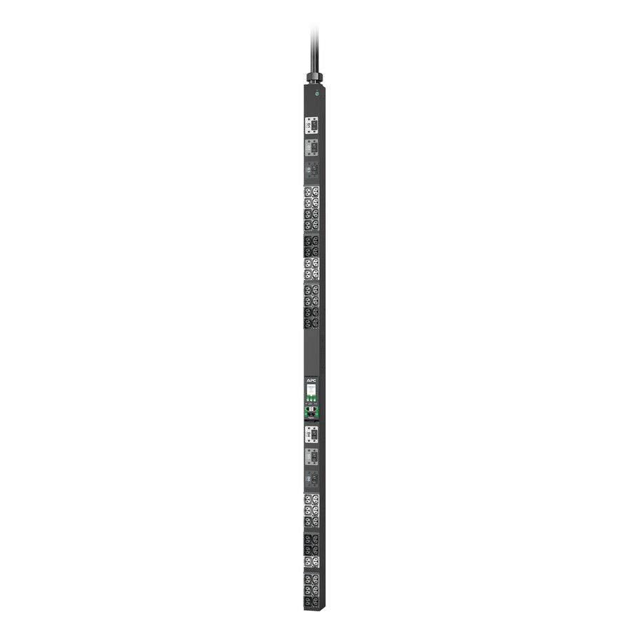 APC NetShelter Rack PDU Advanced provide reliable power distribution to IT Equipment within server and/or networking racks. Switched outlets to turn outlets on or off remotely. Outlet and PDU level power metering for power visibility and notification of potential overload. 4-in-1 combination outlets which can be used as either C13, C19, C15, or C21 outlets provide unparreled deployment flexibility. Maximum outlet density with 42 outlets in a 2.2" wide form factor. Outlets on the PDUs are color coded and/or labeled by breaker and input phase on 3 phase models to simplify deployment. Provides an alternating phase design whereby each of the 3 phases are organized into small outlet groups which alternate from top to bottom of the PDU to facilitate better power cord management and promote better load balancing. Power Sharing allows PDUs cascaded together via 2 ethernet ports enable an Network Management Card to continue functioning in the event of an AC power loss. No interruption in Network communication, sensors operation, and alarm traps. Live Swap Network Management Card (NMC) which can be replaced without powering down the PDU or connected devices to minimize downtime in the unlikely event of an NMC power event. Rated and approved to operate up to 60C (140F) at full load ensures reliability and availability even in today's high density deployments. Gigabit ethernet to enhance and standardize network connectivity across all assets in the data center. A second ethernet port (10/100) is available to allow cascading to other PDUs, connect to a 2nd private network, or provide network redundancy. 1% metering accuracy for the peace of mind to use NetShelter Rack PDU Advanced to bill based on power usage. In addition, the higher level of accuracy ensures the most precise measures for capacity planning and threshold alarm monitoring. Two environmental sensor ports allow for optional sensors (sold separately) to be connected.