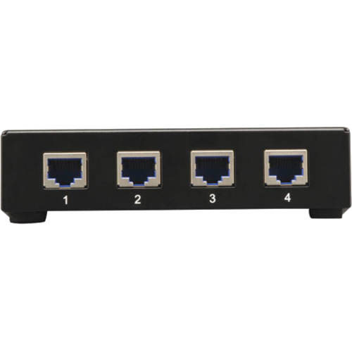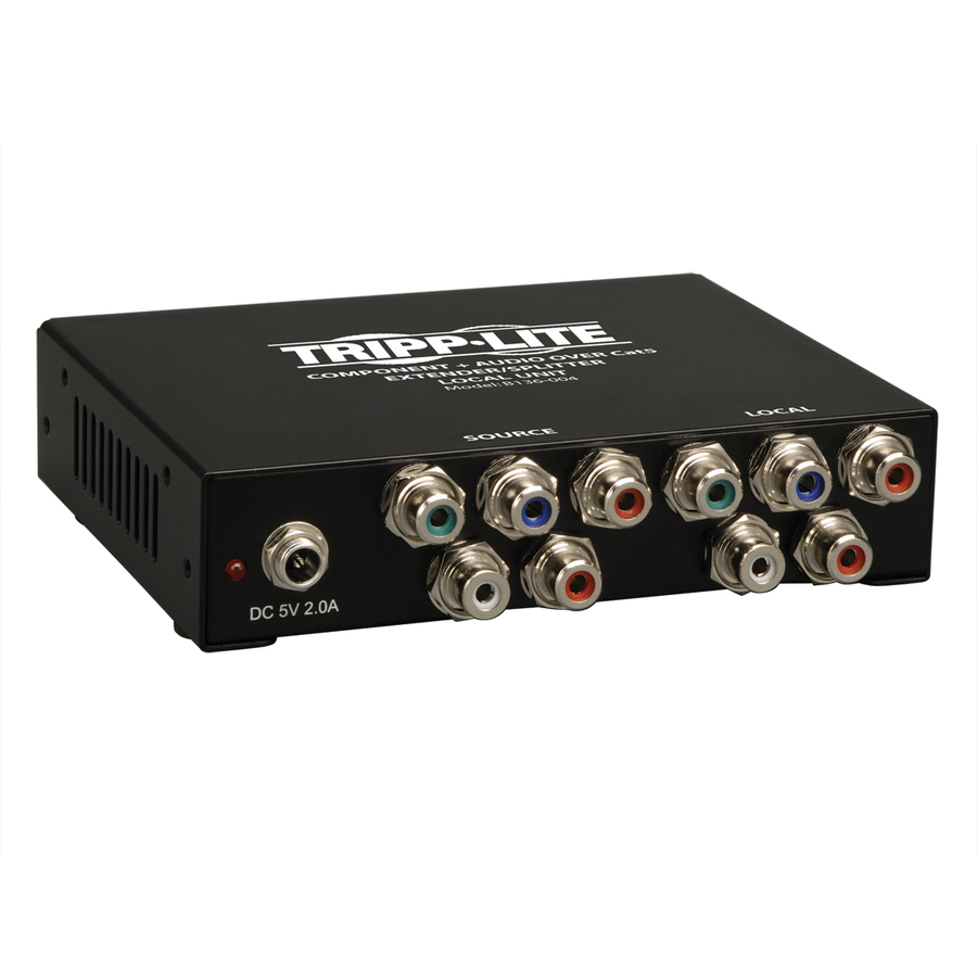 Tripp Lite's B136-004 takes a single Component Video and Stereo Audio signal and splits it to five (1 local, 4 remote). When used in conjunction with a B136-100 or B136-100-WP remote unit, you can transmit a Component Video ( YPbPr ) and Stereo Audio signal from any DVD player, PS3, or Cable/Satellite device to up to four displays over a single CAT5, CAT5E, or CAT6 cable. A 1080p (60Hz) Component Video and Stereo Audio signal can be extended up to 300 ft. when using 24Awg, Solid Wire UTP cable (Tripp Lite N202-Series); or, up to 400 ft. when using Zero-Skew UTP cable (Tripp Lite P524-01K). A 480p (60Hz) Component Video and Stereo Audio signal can be extended up to 500 ft. when using 24Awg, Solid Wire UTP cable (Tripp Lite N202-Series); or, up to 700 ft. when using Zero-Skew UTP cable (Tripp Lite P524-01K). The number of displays can be increased to up to 13 (1 local, 12 remote) by daisychaining 3 B136-004 units together.