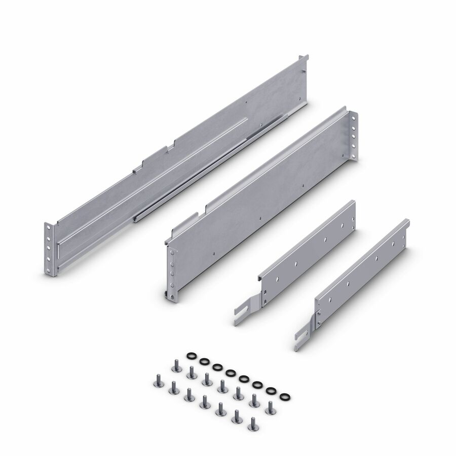 The CyberPower CP2RAIL02 4-post rackmount rail kit provides a mounting solution for select 2U and 3U UPS systems weighing up to 500 pounds. The two adjustable rails (right and left) can be expanded from 20.1" to 35.8" for various sizing requirements and installed by a single person.