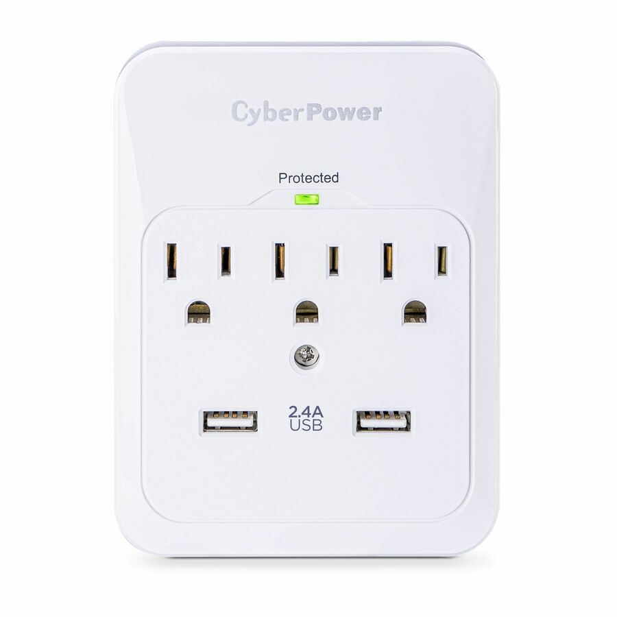 CyberPower CSP300WUR1 Professional 3-Outlets Surge with 600J, 2-2.1A USB and Wall Tap - Plain Brown Boxes