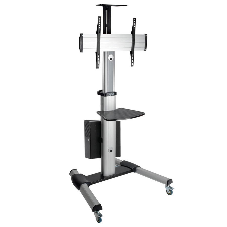 Move Your Flat-Panel Display or Interactive Whiteboard Wherever Your Audience IsThis rugged Tripp Lite rolling TV stand combines a height-adjustable display mount with the convenience of a mobile cart. Mount your flat-panel television, digital whiteboard or touchscreen monitor to the all-metal unit, and then roll it safely and smoothly from room to room. The DMCS3270XPBB lets you deliver your message in corporate, education, healthcare, commercial, hospitality, retail, government and other settings requiring flexibility in a screen's location.