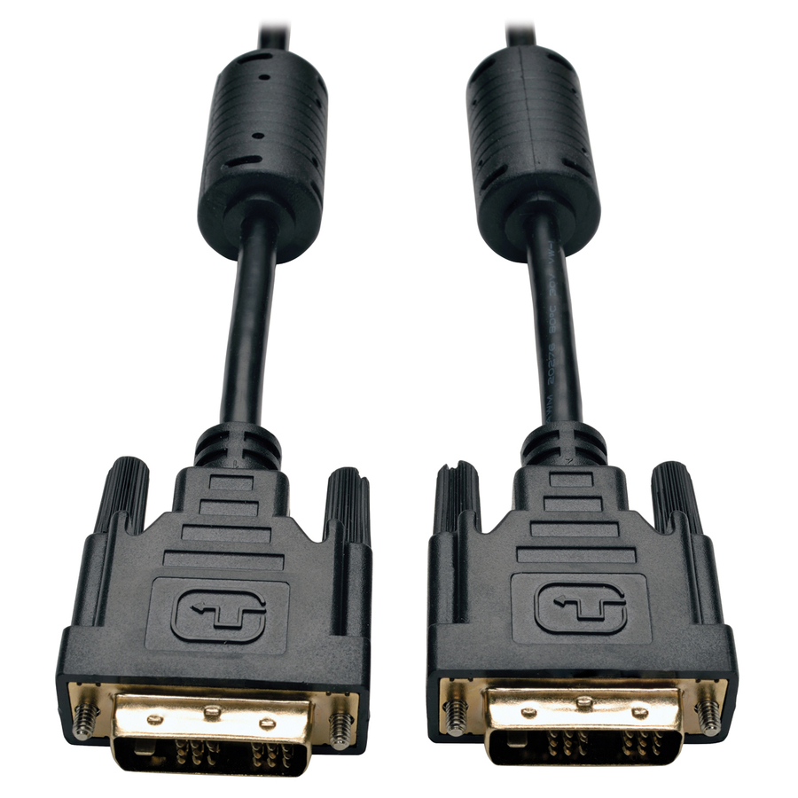 Tripp Lite's 100 foot DVI Single Link TMDS cable delivers the high performance, high bandwidth needed for todays digital video displays. ( Note: Review your monitor manufacturers specifications to check what the maximum cable length supported is. Or, simply add a DVI Extender, to guarantee full digital signal strength ). Gold plated contacts ensure excellent conductivity, while double shielding (foil and braid) provides maximum EMI/RFI protection. Use in conjunction with DVI video cards that are specified as Single Link. Both DVI connectors are molded, have integral strain relief for long life reliability, and ferrite collars to drain off extraneous electrical interference. Tripp Lite warrants this product to be free from defects in materials and workmanship for life.
