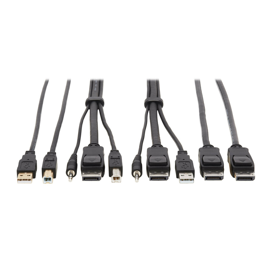 Recommended for the Tripp Lite B002-DP2AC4 and B002-HD2AC4 NIAP KVM switches, this DisplayPort cable kit supports video resolutions up to 3840 x 2160 (4K x 2K) at 60 Hz with true 4:4:4 chroma subsampling, as well as USB 2.0 data transfer speeds up to 480 Mbps. By combining several different cables into one convenient kit, you cut down on unnecessary clutter and costs.