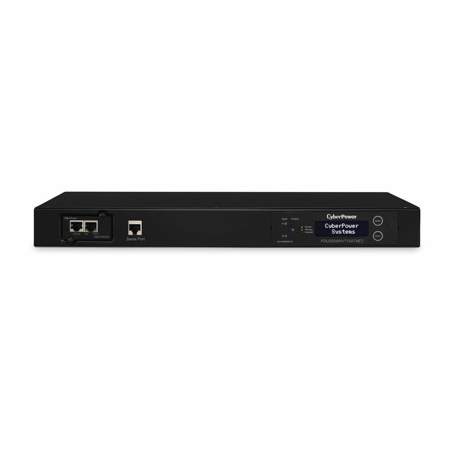 Product Features:Manufacturer:CyberPower Systems, IncManufacturer Part Number:PDU20SWHVT10ATNETManufacturer Website Address:http://www.cyberpowersystems.comBrand Name:CyberPowerProduct Series:Switched ATS PDUProduct Model:PDU20SWHVT10ATNETProduct Name:PDU20SWHVT10ATNET Switched ATS PDU 200-240V 20A 1U 10-Outlets (2) L6-20P