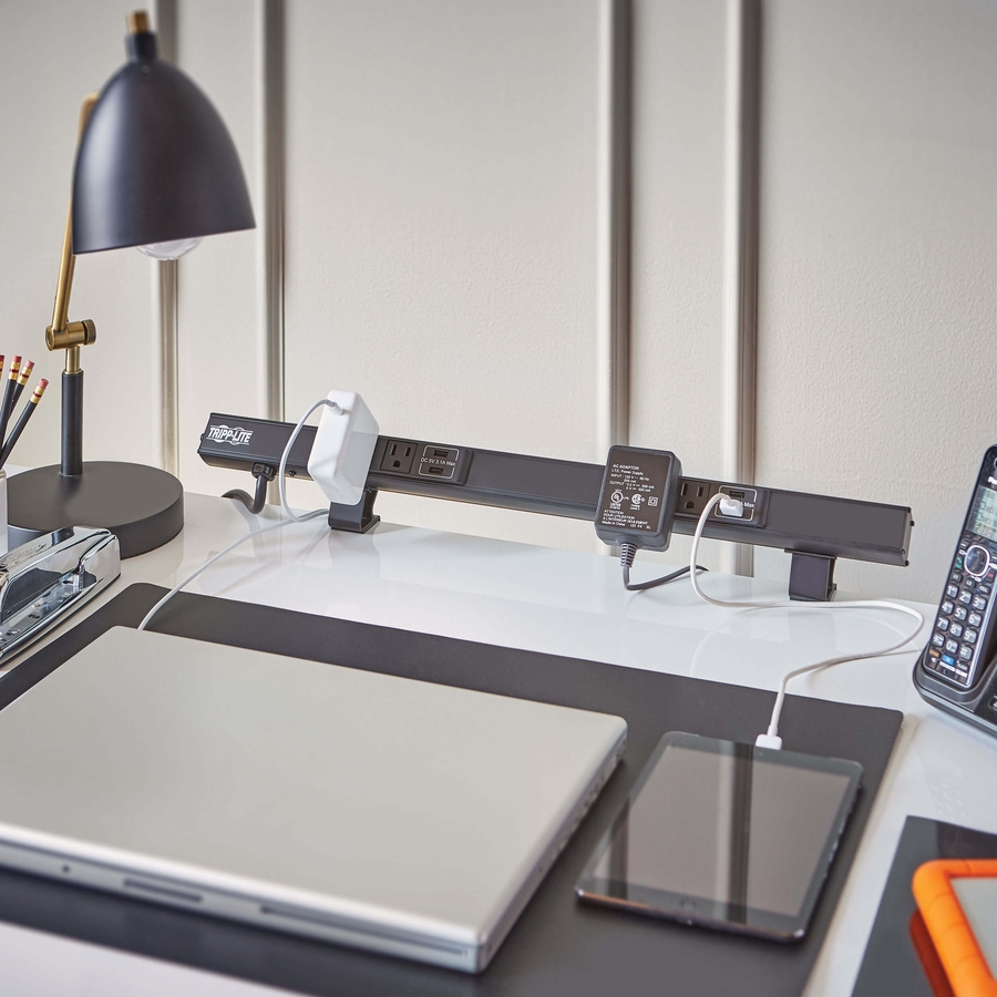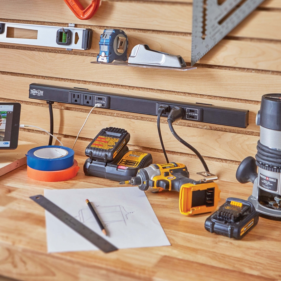 24 in. Power Strip Provides 4 AC Outlets and 4 USB-A Charging Ports