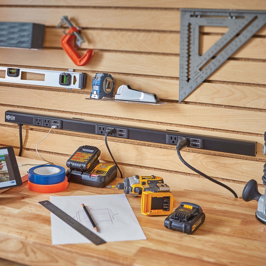 36 in. Power Strip Provides 6 AC Outlets and 6 USB-A Charging Ports