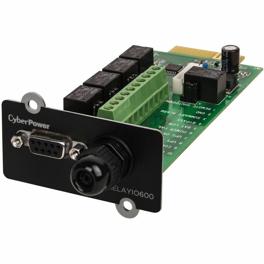 Product Features:Manufacturer:CyberPower Systems, IncManufacturer Part Number:RELAYIO600Manufacturer Website Address:http://www.cyberpowersystems.comBrand Name:CyberPowerProduct Series:UPS HardwareProduct Name:RELAYIO600 OL Series Management Card, 5-Output 1-Input Contact Closures