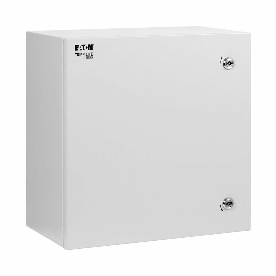 Locking metal enclosure protects your outdoor equipment against theft, damage, tampering, and excess moisture and debris.FeaturesSurface-Mount Enclosure Secures and Organizes Your Valuable EquipmentThis SmartRack® industrial enclosure is designed to protect expensive outdoor equipment, including industrial controls and computers, HMI, enterprise systems, remote networking equipment, distributed controls, production monitoring systems, wireless access points, building automation and HVAC, security, audio-video, and telecommunications applications. Included steel and plastic rear panels accommodate most equipment.NEMA 4 Enclosure Designed for Protection Against Harsh ElementsThe SRIN418186 protects its contents against the ingress of water (including rain, sleet, snow, splashing water and hose-directed water), solid foreign objects (including falling dirt and windblown dust) and even ice forming on the outside of the enclosure. It is ideal for a multitude of industrial sites, such as factories, processing plants, fabrication areas, outdoors, offices, dorms, hotels, classrooms, retail locations and other areas where you need to keep sensitive equipment secure, organized and out of the way.Locks Securely to Help Prevent Theft, Damage and TamperingThe rugged heavy-duty 14-gauge steel housing locks securely with the included key to protect its contents against theft, tampering, dust and other contaminants. The weather-sealed door swings away on a sturdy hinge, allowing easy access to equipment and cabling during installation and maintenance. Data and power cables may be routed through a bottom conduit cutout.Easy to Install on Any Level SurfaceThis steel enclosure comes fully assembled and ready for mounting on a wall or ceiling using both the included and user-supplied hardware. It measures 10 inches high, 10 inches wide and 10 inches deep.