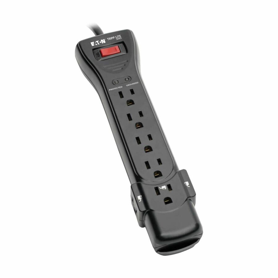 On/off switch provides one-touch control over connected equipment. A green LED indicates protection status, while a red LED assures that your wall outlet is properly grounded.The 25-foot AC power cord allows the SUPER725B to reach distant outlets, while its right-angle NEMA 5-15P plug allows equipment and furniture to be moved flush against the wall to save space. Keyhole slots incorporated into the bottom panel provide convenient wall or desk mounting options for the black plastic housing.