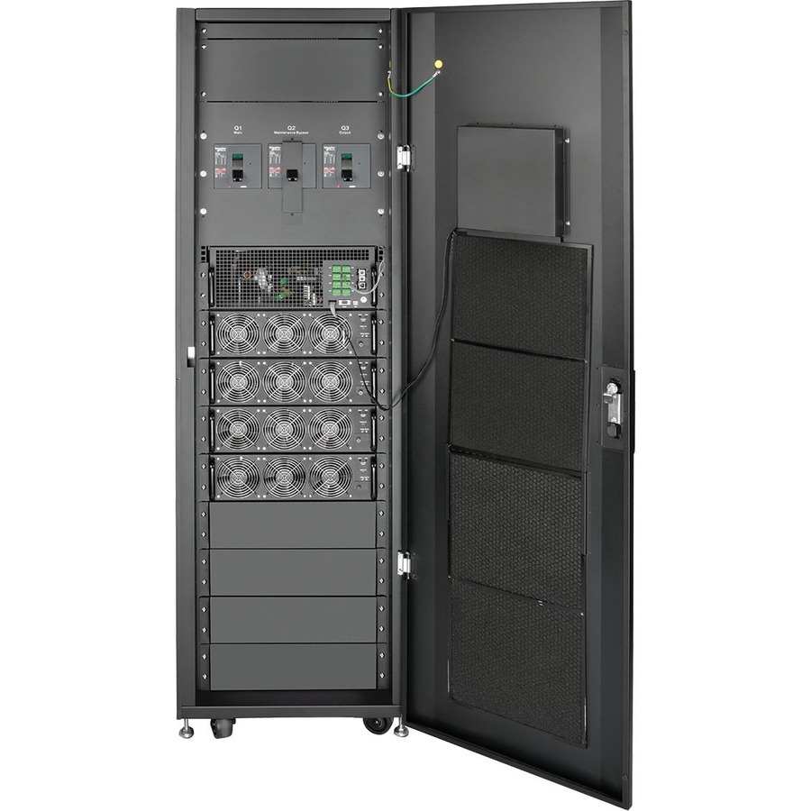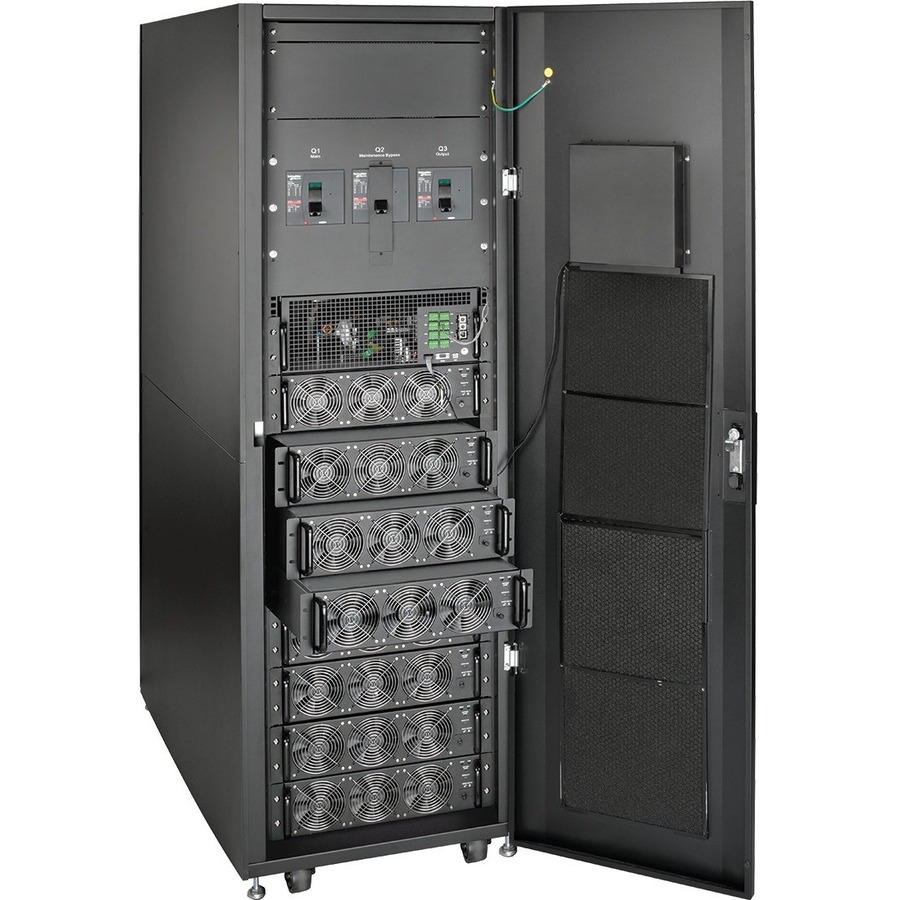Tripp Lite's SVX120KL 120kVA / 120kW SmartOnline large-chassis UPS includes installed Input, Bypass and Output breakers, a Static Transfer Switch (STS) and 4 included 30kVA SVX30PM power modules. The system includes space for up to 4 additional user installable SVX30PM power modules to accommodate increased capacity up to 210kW with N+1 fault-tolerance.