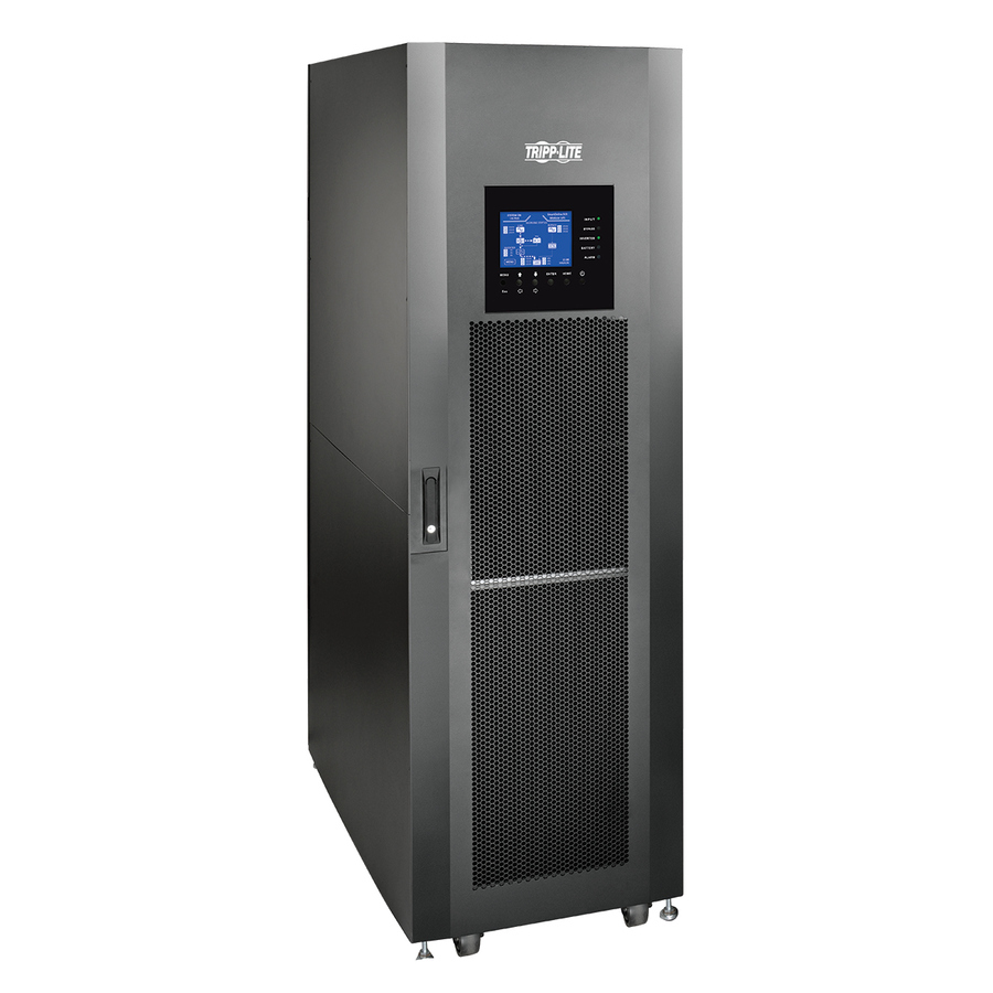 Tripp Lite's SVX30KM1P4B 30kVA/30kW SmartOnline® Medium-Frame UPS includes installed input, bypass and output breakers, a static transfer switch (STS) and 1 included 30kVA SVX30PM power module. This system supports the addition of up to 3 additional user-installable SVX30PM power modules to accommodate increased capacity up to 90kW with N+1 fault-tolerance. Four internal battery modules are included with space for up to 1 additional SVXBM internal battery module or any number of compatible ±240VDC external battery packs (sold separately). Featuring a modular, scalable design with high-efficiency voltage and frequency independent/VFI operation, Tripp Lite's SVX Series SmartOnline UPS systems are ideal for the protection of a wide variety of critical IT systems. Scalable, modular configuration enables UPS capacity upgrades and hot-swap power supply maintenance without costly downtime. Over 95% efficient in standard online mode and over 99% efficient in optional economy mode enables reduced operating and cooling costs. Unity power factor configuration provides equal kVA and kW output ratings for up to 25% more wattage capacity than common 0.8 - 0.9 power factor competing designs. Network-grade sine-wave AC output with 1% output voltage regulation and less than 1.5% output total harmonic distortion. Advanced IGBT inverter with Digital Signal Processor (DSP) technology provides for less than 3% input total harmonic distortion (THDi) to support 1:1 generator sizing. Dual-input hardwire design enables operation from one or two input power sources for enhanced system availability. N+1 fault-tolerance is configurable anytime there is an "extra" SVX30PM 30kW power module installed beyond the minimum required quantity. Automatic and manual bypass options keep connected equipment operational during routine maintenance or critical power module failure.