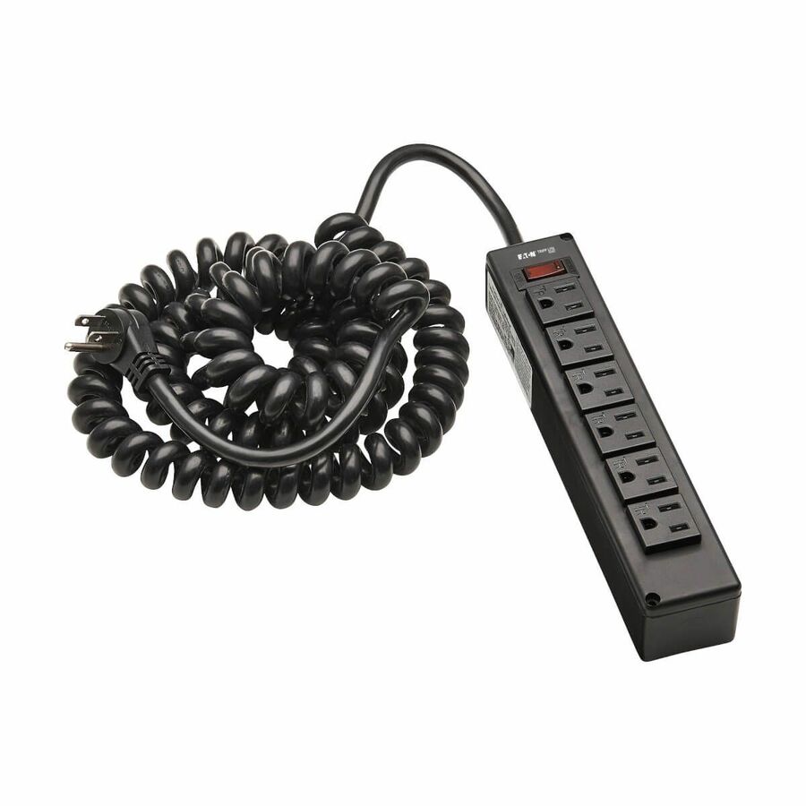 6-Outlet Surge Protector Safeguards Your Sensitive ElectronicsIdeal for your home, office, retail or industrial workstation, this Safe-IT™ surge protector features a 300 joule rating to defend your valuable electronic components against damaging power surges and spikes. The 10-foot (3-meter) coiled AC input cord with right-angle NEMA 5-15P plug gives you flexibility in placing the surge protector away from the nearest wall outlet.