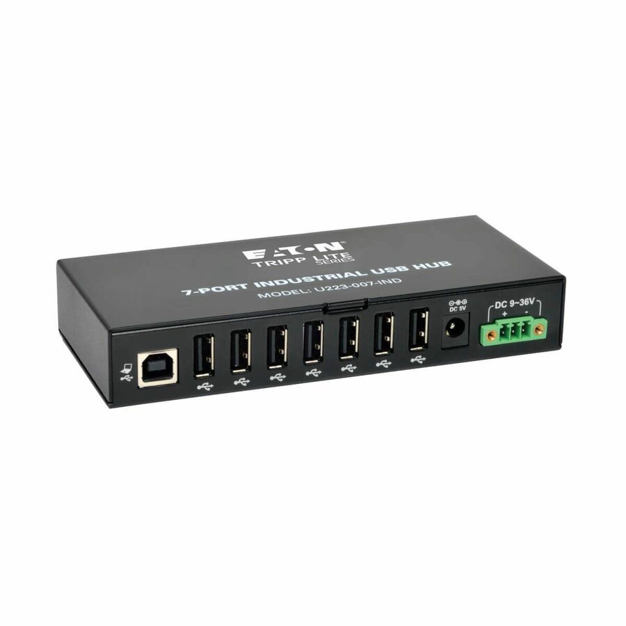 Tripp Lite's U223-007-Ind Is A Rugged, All Metal Constructed Usb 7-Port Hub For Use In Data Centers, Work Areas, And Industrial Applications. Can Be Mounted On A Wall Or Din-Rail With Included Mounting Hardware. Supports Hi-Speed Usb 2.0 Transfer Rates At 480Mbps, But Is Also Backward Compatible To Usb 1.1 ( 12Mbps ). Hub Is Bus-Powered Through The Computer Connection, Or Can Self Power With An External Adapter ( Not Included ) Or Via The Included 3-Wire Terminal Block Connector ( 9-36V ).
