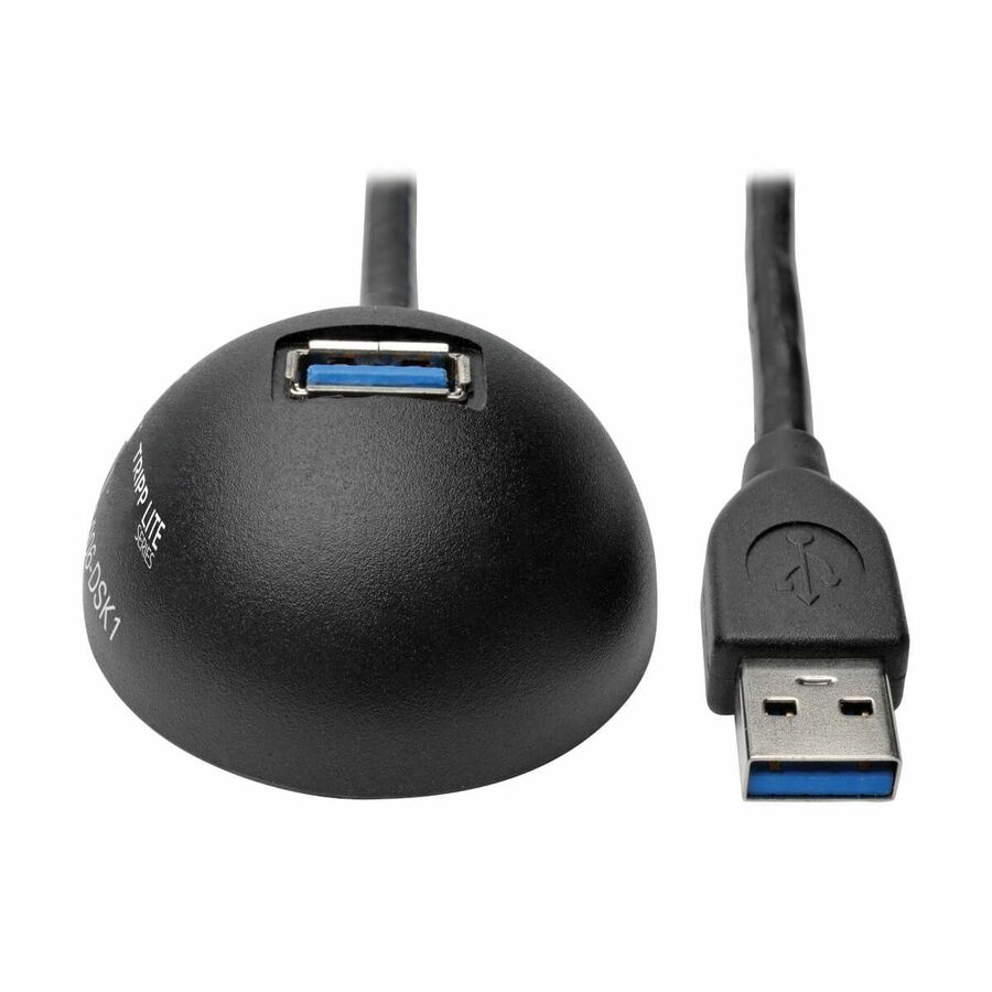Connect the U324-006-DSK1 1-Port USB 3.0 SuperSpeed Desktop Extension Cable (M/F) to your computer's existing USB-A port to extend it up to six feet away. This flexibility allows you to place the cable's desktop hub with female USB 3.0 connector within easy access next to your keyboard, on a nearby shelf, behind a monitor or anywhere else you find convenient. It's especially recommended for moving a rear USB port somewhere easier to access. A black padded base provides stability.The U324-006-DSK1 supports data transfer rates up to 5 Gbps-ten times the speed of USB 2.0. The cable's bi-directional data interface allows data to flow both directions simultaneously, increasing theoretical bandwidth by ten times. Backward compatible with earlier USB generations, the U324-006-DSK1 features premium foil and braid shielding to deliver reliable, error-free signal quality and protection from EMI/RFI interference. Molded nickel-plated connectors with gold-plated contacts ensure excellent conductivity. Integral strain relief ensures the cable and connectors last a long time. A rugged PVC jacket protects twisted 28 AWG data lines and 24 AWG power lines.