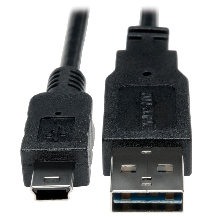 Tripp Lite's UR030-06N, 6-in., USB 2.0 Universal / Reversible "A" to Mini-B 5-pin device cable, meets or exceeds USB 2.0 Specifications. Connects a Digital camera, PDA, Cell Phone, etc to a USB port on a computer or hub. Backward compatible - can be used with older USB1.1 applications as well. All Tripp Lite USB 2.0 cabling include superior foil shielding for reliable, error-free data communications. The significantly faster data transfer rates of USB 2.0 (up to 480 Mbps) make them perfect for multimedia applications. Features nickel plated connectors and gold plated copper contacts for superior conductivity. The cable is manufactured with molded connectors and integral strain relief for extra durability and long life.