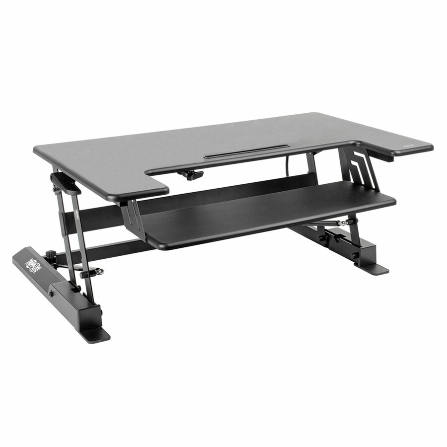 Tripp Lite's WWSSD3622 WorkWise™ Height-Adjustable Sit-Stand Desktop Workstation allows you to enjoy the benefits of standing for a portion of the day without using your entire work surface. Simply place the WWSSD3622 on a fixed-height desk or table. You can change the height of your monitor and keyboard to improve ergonomics, promote health and increase productivity.To raise or lower the adjustable sit-stand desktop, press both side handles. The monitor platform and keyboard tray move together to provide smooth transitions between sitting and standing. The base remains stable at all heights. Maximum weight capacity is 33 pounds.The monitor platform measures 36 x 22 inches and adjusts up to 16 inches above the work surface. It's sturdy enough to support a dual-arm display mount. The extra-large keyboard tray measures 27 x 9 inches to accommodate the largest popular keyboards. At its lowest height, the keyboard tray rests on the work surface. A cable management clamp attaches to the rear of the keyboard tray for neat bundling and organizing of keyboard and mouse cables.