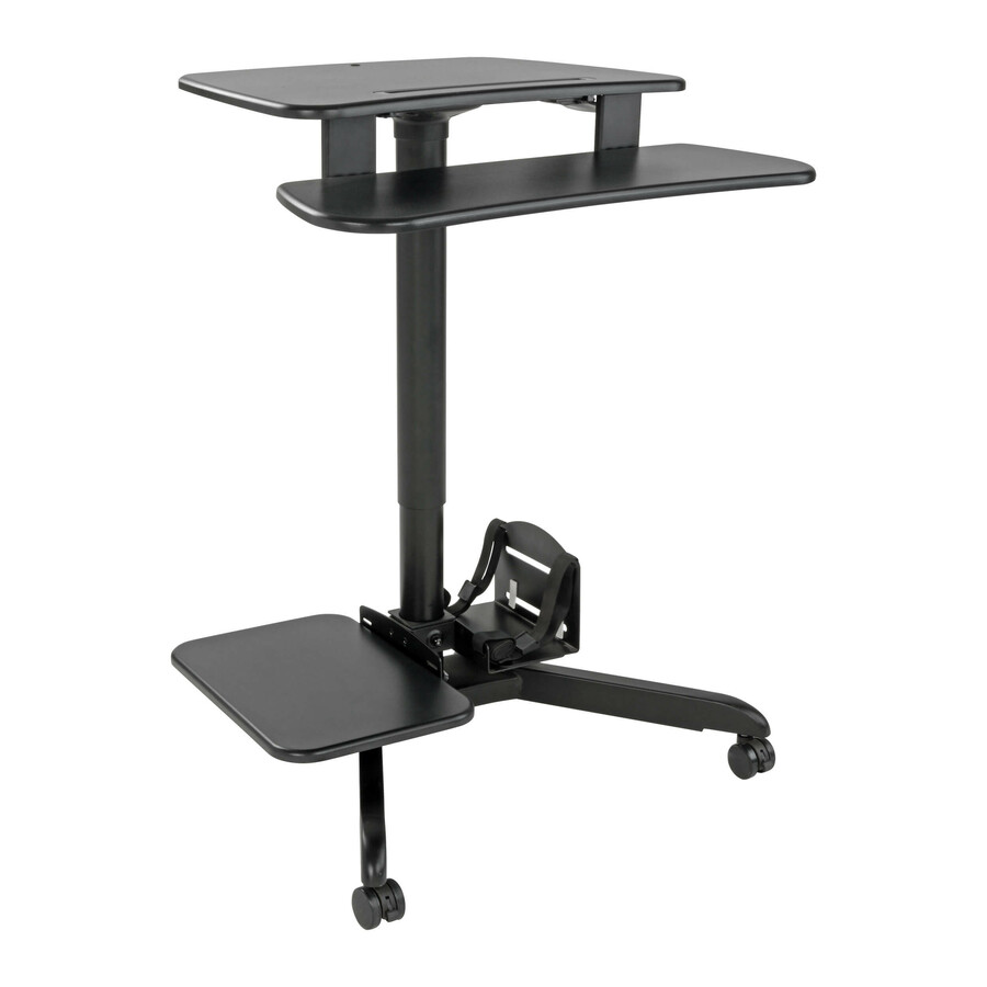 Mobile standing desk is an all-in-one workstation you can roll anywhere. Adjustable height creates a more ergonomic workspace.